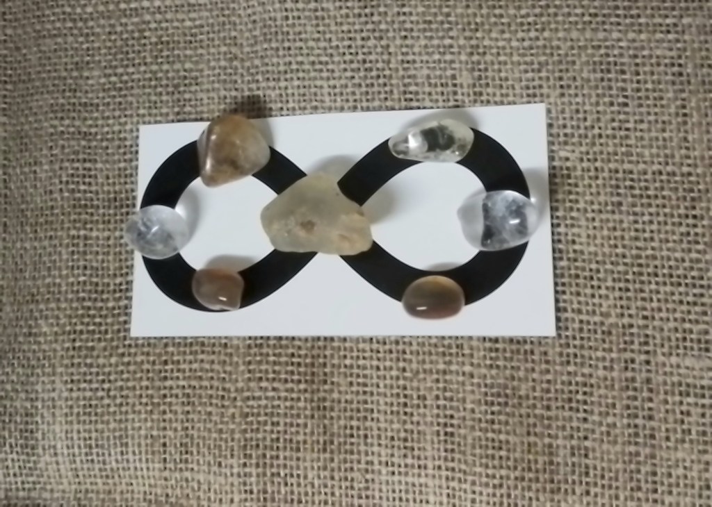 In the below infinity grid Citrine and Topaz are used to bring in the energy of abundance. The infinity symbol itself represents limitlessness and continuation. The infinity symbol can be used to strengthen our pursuits of our goals. Clear Quartz is used to amplify the energy of abundance.
