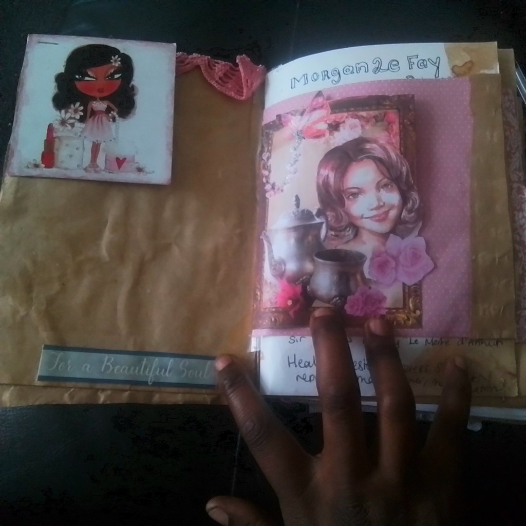 I have exciting news and an excuse to create another junk journal. I will dive into what a junk journal is in this post but first my exciting news… drum roll please…. I have been selected for a Sponsorship to join the Morgan Le Fay Mystery school Sister Training. I still can’t believe it. Only 2 Full sponsorships were given this year and I was selected for one of them. Seriously my minds blown.I am so grateful, excited and nervous. The school is run by Demi Fox and I have been following her for years, I love her style and way of teaching. The school follows the path of the Avalon Priestess and the Celtic and Druid teachings. These teachings have offshoots that tie into the Rose Priestess Path and the curriculum is based on the Priestesses of Avalon with a focus on Morgan Le Fay. I’ve mentioned before about being priced out of Priestess trainings that I am interested in as I have not had a few thousand that I can put down for a training. I have already taken some Priestess training but I really want a rounded education in the Priestess Healing Arts field and as a newly trained Priestess my studying and journey has only just begun. Seriously since working with the Goddess for the past year magickal things have begun to happen in my life. I am fully committed to the Priestess path and have self committed to atleast 1 year Priestess training in whatever format is in alignment with my goals.I committed to a year of Shamanic studying a few years ago and have never looked back. Priestess training and Shamanism will be a lifelong pursuit for me but to make that do able I always give myself one year and by the end of that one year I’m all in.The full Morgan Le Fay Sister training starts at the end of October and runs for 11 months. It is the first year of Priestess training and ends with a dedication as a sister of Morgan le Fay. I am just honored and excited to learn from such an experienced Priestess. Anyway we have received orientation homework and 1 of them included getting a journal to document our experiences and to take course notes. I had a half made junk journal (book of tea and coffee stained paper) that I had created and not known what to do with and I have dedicated it to the training. I have begun to add additional pages to the book and I wanted to take the opportunity to introduce you to the practice of junk journalling and show you my book.