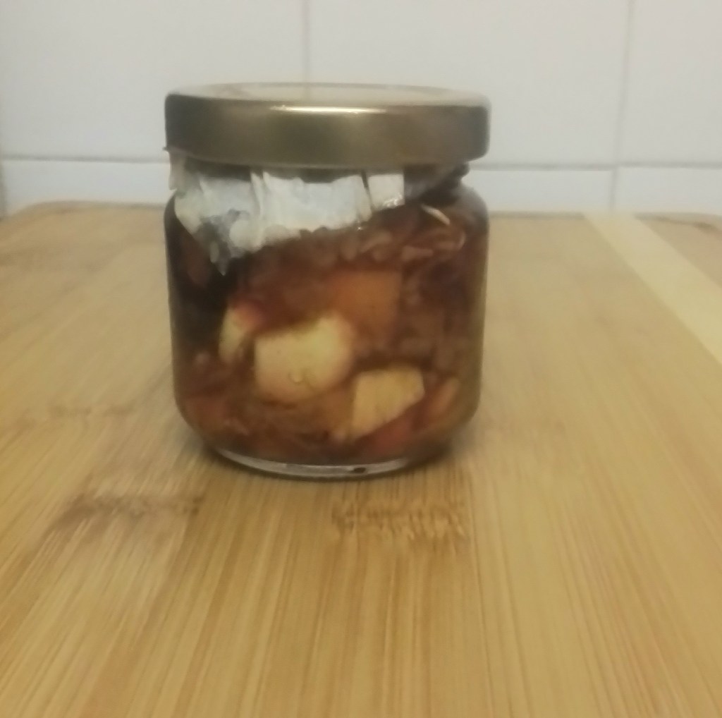 The base of my Fire Cider was: Dehydrated Onions, Cloves, Dried Hibiscus, Dried Rose Hip, Dried Hawthorn Berries, Tumeric Powder, Fresh Ginger, Lemon, 4-5 peeled and sliced Garlic cloves and half a thin Chilli cut and sliced.
