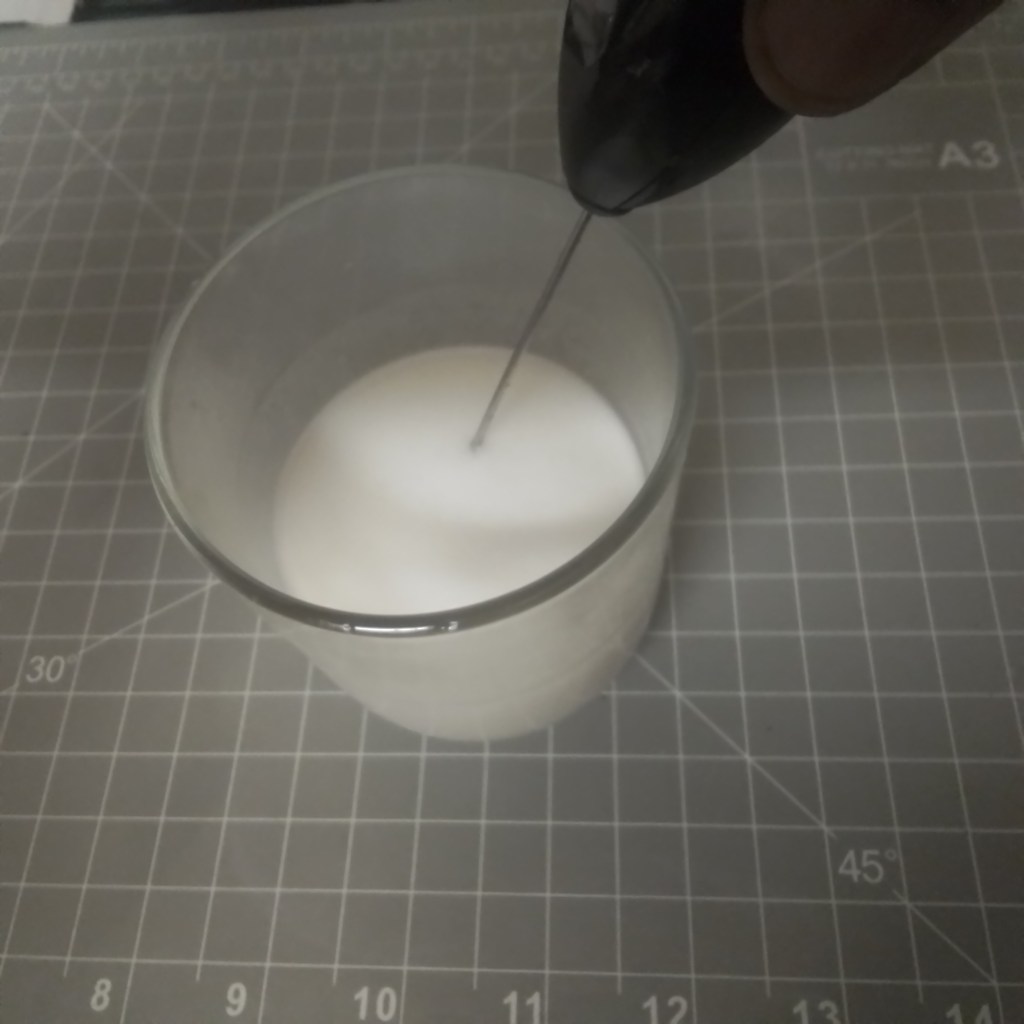 Immediately begin blending using a stick blender, mini whisk, or milk frother.