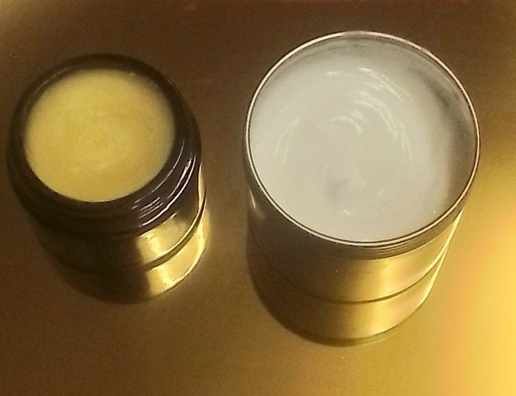 Both creams and balms require an oil as part of the base. A balm only requires oil and wax and a cream requires oil, water and an emulsifier and preservative. The emulsifier allows the oil and water to blend together. Balms are great for dry and sensitive skin as they can provide a barrier against outside influences that can trigger a skin reaction. Creams can replenish dry or dehydrated skin and provide a soothing action for inflammation and spots. I have found when used on my own skin, that the addition of essential oils in low doses such as below 3% also soothe rashes and reactions and allow them to clear up quickly.